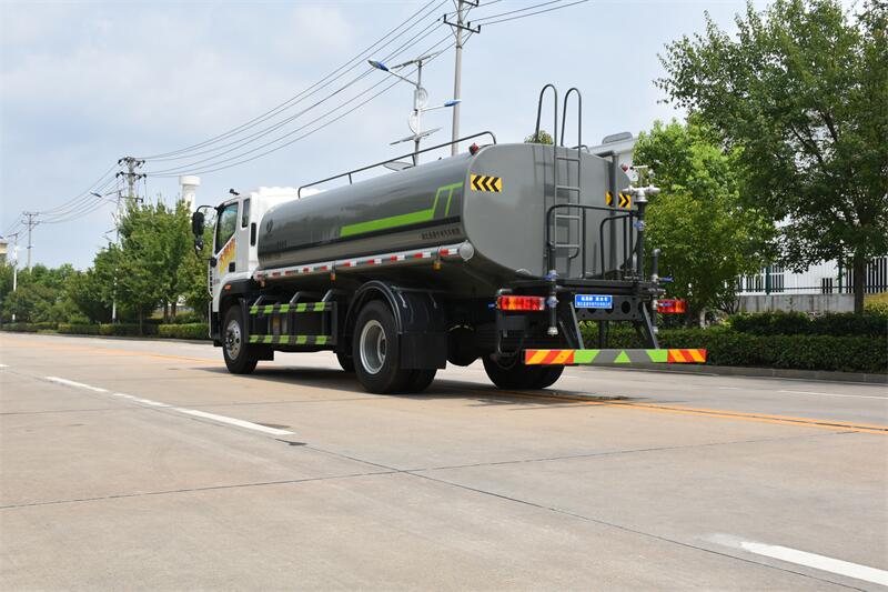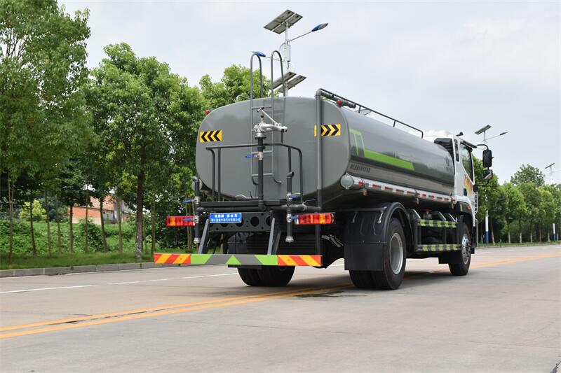 福田15噸灑水車標(biāo)配前噴(鴨嘴)、后沖、后灑、側(cè)噴、后置式工作 平臺(tái),平臺(tái)上配置綠化水炮(可 360°旋轉(zhuǎn),既可以調(diào)成柱狀,也可 以調(diào)成霧狀,更可以調(diào)成直沖狀、大雨、中雨、小雨、毛毛雨),配 備優(yōu)質(zhì)大功率專用灑水泵(可自吸自排,可從河里或池塘抽水到罐體), 取力器,雜物過(guò)濾網(wǎng),消防接口,自流球閥系統(tǒng)、取力器、球閥、濾網(wǎng) 均為國(guó)家標(biāo)準(zhǔn)產(chǎn)品,主管道加粗,法蘭墊、法蘭盤加厚,大通徑球閥。 整體具備性能優(yōu)良安全可靠、效率高、流量大、維修方便等特點(diǎn)。 二.產(chǎn)品配置 1.底盤配置: 發(fā)動(dòng)機(jī)玉柴 200 馬力(四缸),法士特 8 檔變速箱,軸距 4500,前 橋 4.5T,后橋 10T,10.00 鋼絲胎,斷氣剎,空調(diào),電動(dòng)玻璃,ABS。
