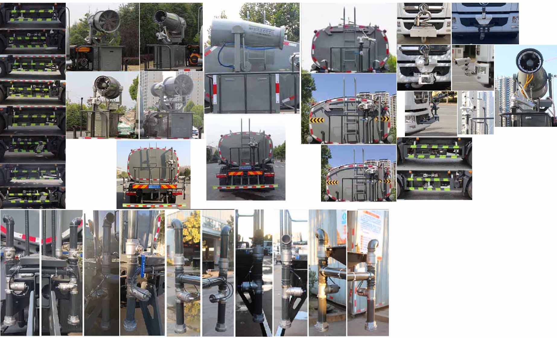 東風(fēng)多利卡D9灑水車上裝配置: 1、罐體約為 15 方, 2、邊燈帶電,罐體尾部上方標(biāo)配 2 個(gè)紅色示寬燈, 3、標(biāo)配前噴為鴨嘴直沖,標(biāo)配后沖,用戶可根據(jù)自己的需求,來調(diào) 整對(duì)沖位置。 4、沖孔平臺(tái)(承載能力加強(qiáng)),炮筒后蓋為定制型螺栓卡扣, 5、前噴、后沖、后灑、側(cè)噴,綠化高炮開關(guān)球閥均采用工程專用 50 大通徑銅球閥, 6、新式軸承式水炮,更加耐用, 7、60-90 型水泵, 8、防腐法蘭墊片, 9、鋁制后灑,不易炸開 10、罐體自動(dòng)焊(美國林肯焊機(jī)及電源),拼板自動(dòng)焊接,封頭環(huán) 縫焊接,無氣孔,焊縫美觀。 11、側(cè)護(hù)網(wǎng)、后保險(xiǎn)杠、均為螺栓連接,方便拆卸,維修方便。 12、塑料擋泥板,替代鐵擋泥板,更加輕便,用螺栓連接,方便拆 卸。 13、前部、后部主管連接處為 6 孔圓法蘭,不易沖墊