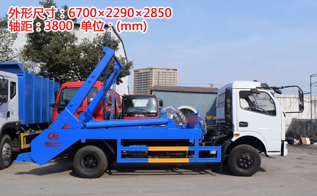 東風福瑞卡擺臂式垃圾車,福瑞卡2030款駕駛室,云內130馬力發動機,5檔變速箱,3.8米軸距,4.2噸后橋,7.50R16鋼絲胎,單層大梁,斷氣剎,ABS。