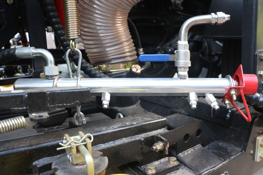 九、東風(fēng)天錦洗掃車的污水箱內(nèi)采用大平面斜坡結(jié)構(gòu),最大卸料角度可達(dá)50度,更易于傾倒垃圾。污水箱內(nèi)設(shè)置了防溢滿報(bào)警裝置和高壓噴淋清洗裝置,防溢滿報(bào)警裝置可防止污水作業(yè)時(shí)從吸管溢出,造成二次污染;高壓噴淋清洗裝置在傾倒垃圾后可對污水箱進(jìn)行自動清洗,大大減輕了操作人員的勞動強(qiáng)度。