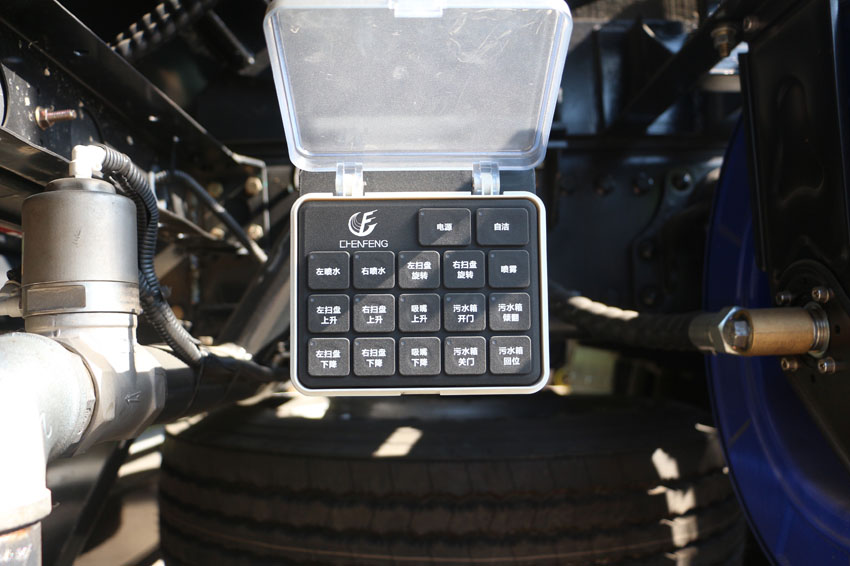 三、采用先進(jìn)的智能化一鍵控制技術(shù),全部作業(yè)均在駕駛室內(nèi)完成,作業(yè)時(shí),只需選定作業(yè)模式后,各作業(yè)機(jī)構(gòu)的啟動與關(guān)停由程序自動控制。具有全洗掃作業(yè)、左洗掃作業(yè)、右洗掃作業(yè)、全掃路作業(yè)、左掃路作業(yè)、右掃路作業(yè)、全吸作業(yè)、左洗作業(yè)和右洗作業(yè)等9種作業(yè)模式可選。