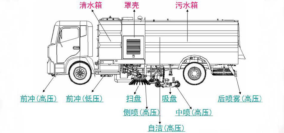 東風天龍后雙橋洗掃車12水10塵-東風大型洗掃車價格報價-湖北盈通