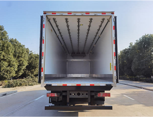 汕德卡9米6氣囊橋冷藏車廂體配置為:斷橋隔溫工藝,整體結(jié)構(gòu)框架,內(nèi)外面料為3mm新款啞光玻璃鋼夾保溫層真空復(fù)合而成,廂體厚度為8cm,最新款鋁合金包邊型材,型材局部厚度為4mm(鋼制鉚釘加固),廂體內(nèi)部采用2個(gè)LED照明燈及廂體示寬燈,后門框不銹鋼材質(zhì),門框密封條為三元乙丙橡膠材質(zhì),加厚型不銹鋼合頁及鎖件;副梁為Q700車用大梁鋼,15mm厚大梁墊皮,加裝防撞膠塊,不銹鋼門鎖件,配后雙開門,副駕駛一側(cè)居中靠前開單側(cè)門一個(gè),帶2個(gè)排水孔。汕德卡9米6氣囊橋冷藏車?yán)錂C(jī)配置:可選安裝颶豐,凱利,凱雪,冷王,開利等冷藏機(jī)組,最低溫度可達(dá)-18度。車廂內(nèi)溫度可根據(jù)需求自由調(diào)節(jié);溫度控制器安裝在駕駛室內(nèi),方便操作控制。選裝配置:通風(fēng)槽,肉鉤導(dǎo)軌,卡槽等。