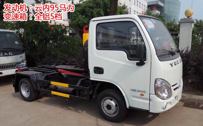 躍進(jìn)小福星勾臂式垃圾車,上汽躍進(jìn)底盤,云內(nèi)德威95馬力,柴油發(fā)動(dòng)機(jī),全鋁5檔變速箱,軸距2.8米,輪胎型號185R14重型后雙胎,前盤制動(dòng)。