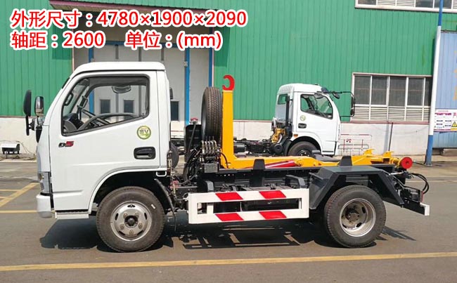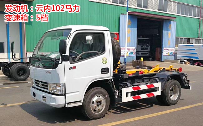 風小多利卡D5勾臂式垃圾車,東風小多利卡D5駕駛室,云內102馬力發(fā)動機,5檔變速箱,軸距2.6米,輪胎型號6.50-16輪胎,帶ABS,方向助力。