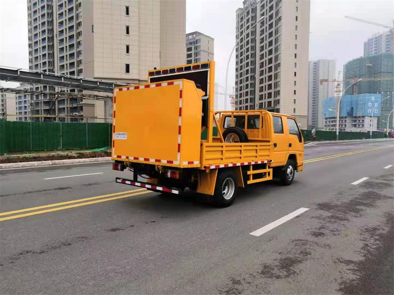 上裝配置:防撞緩沖車尾部設(shè)置防撞緩沖塊,防撞緩沖塊采用液壓升降裝置,還配備車載一體化的電子屏、電子箭頭標(biāo)志牌、頻閃燈及爆閃燈多種警示燈,能夠?yàn)楹蠓杰囕v提供警示和指示方向。箭頭指示標(biāo)志可對(duì)左、右及禁止通行進(jìn)行導(dǎo)向指示,對(duì)道路車輛提供主動(dòng)安全引導(dǎo)和安全警示,最大限度降低施工對(duì)交通流量的影響并確保安全。尾部升降和燈具采用遙控控制,可在車輛附近安全控制防撞緩沖塊的升降和警示燈的開關(guān)。
