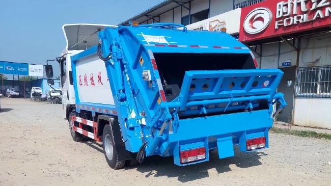 壓縮垃圾車采用機(jī)電液一體化技術(shù),借助機(jī)、電、液聯(lián)合自動(dòng)控制系統(tǒng)、電腦控制系統(tǒng)及手動(dòng)操作系統(tǒng),通過(guò)車廂、填裝器和推鏟等專用裝置,實(shí)現(xiàn)垃圾倒入、壓碎或壓扁、強(qiáng)力填裝,把垃圾計(jì)入車廂并壓實(shí)以及垃圾推卸的工作過(guò)程。利用后裝裝置與垃圾桶或垃圾斗對(duì)接,一起組合成流動(dòng)垃圾中轉(zhuǎn)站,具有自動(dòng)反復(fù)壓縮以及蠕動(dòng)壓縮功能 。