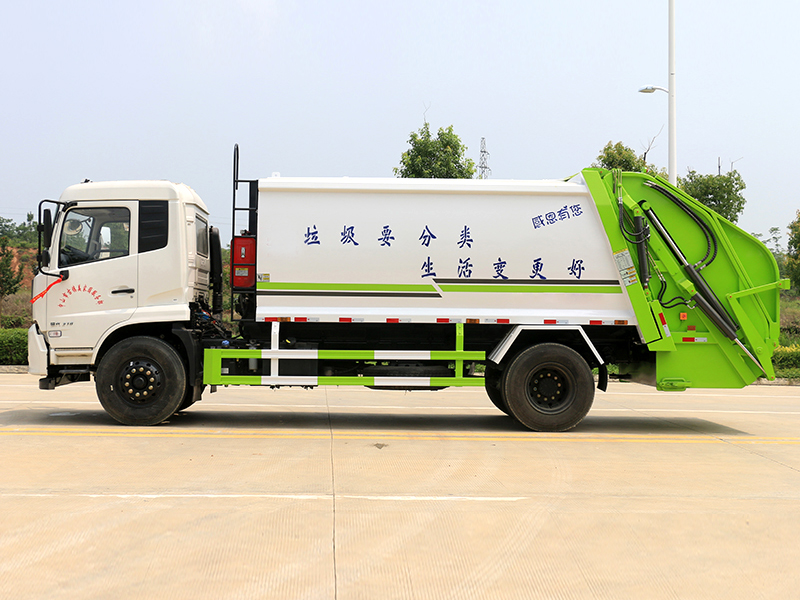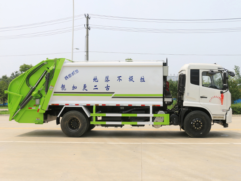 新款平面弧形廂體,廂體材料為武鋼優(yōu)質(zhì)碳鋼,外箱尺寸:8890×2500×3300mm,有效壓縮容積12-14立方,PLC一鍵操作控制,手電一體操作模式,兩側(cè)雙電控,帶駕駛室內(nèi)操作,底板支撐加強(qiáng),雙向壓縮,開放式易清潔污水箱。壓縮式垃圾車采用機(jī)電液一體化技術(shù),借助機(jī)、電、液聯(lián)合自動控制系統(tǒng)、電腦控制、手動操作系統(tǒng),通過填裝器和推鏟等專用裝置,實(shí)現(xiàn)垃圾倒入、壓碎或壓扁、強(qiáng)力裝填,把垃圾擠入車廂并壓實(shí)和推卸,污水全部進(jìn)入污水收集箱,解決了垃圾運(yùn)輸過程中的二次污染的問題。壓縮式垃圾車具有自動反復(fù)壓縮以及蠕動壓縮功能,壓縮比高、密封性好、裝載量大﹑操作方便、環(huán)保性好﹑整車?yán)霉β矢叩葍?yōu)點(diǎn)。
