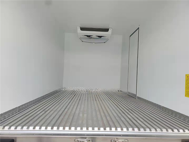 國(guó)六慶鈴M100藍(lán)牌冷藏車廂體配置為:采用斷橋隔熱工藝,整體框架結(jié)構(gòu)制作,廂體內(nèi)、外壁材料為玻璃鋼板,采用高密度保溫層,廂板內(nèi)帶有骨架,廂體厚度80mm,門框,門飾件、包角全部使用不銹鋼材質(zhì)。最新款鋁合金包邊型材,廂體內(nèi)采用LED照明燈及廂體示寬燈;門框密封條為橡膠材質(zhì),后門梁帶加厚防撞塊,加厚型不銹鋼鉸鏈及鎖件。車體副梁采用510L高強(qiáng)度鋼制作,底板為鋁花紋板(標(biāo)配塑鋼花紋板,可選鋁花紋板,不銹鋼板),車廂后門帶一個(gè)上車扶手,其余標(biāo)配;