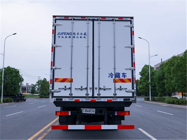 東風(fēng)天錦8米6冷藏車(chē)廂體配置為:斷橋隔溫工藝,整體結(jié)構(gòu)框架,內(nèi)外面料為3mm新款啞光玻璃鋼夾保溫層真空復(fù)合而成,廂體厚度為8cm,最新款鋁合金包邊型材,型材局部厚度為4mm(鋼制鉚釘加固),廂體內(nèi)部采用2個(gè)LED照明燈及廂體示寬燈,后門(mén)框不銹鋼材質(zhì),門(mén)框密封條為三元乙丙橡膠材質(zhì),加厚型不銹鋼合頁(yè)及鎖件;副梁為Q700車(chē)用大梁鋼,15mm厚大梁墊皮,加裝防撞膠塊,不銹鋼門(mén)鎖件,配后雙開(kāi)門(mén),副駕駛一側(cè)居中靠前開(kāi)單側(cè)門(mén)一個(gè),帶2個(gè)排水孔。