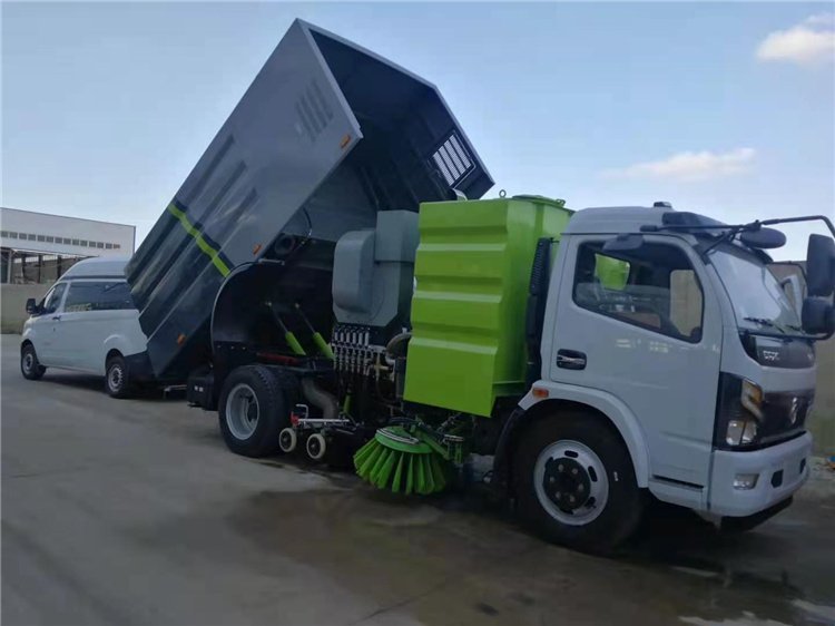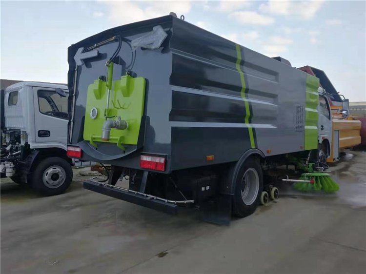 東風多利卡洗掃車采用洗,掃,吸,混合的方式收集垃圾,濕式除塵、電液PLC一鍵控制,液壓傾翻卸料的作業方式對路面進行清掃作業。采用副發動機專門驅動風機和液壓系統,保證行駛過程中能繼續工作,保證清掃過程的連續性。采用“中置兩掃盤 +噴霧降塵+中置寬幅吸嘴(內置高壓噴桿及兩側高壓噴桿)的結構布局,對泥濘路面有更好的清潔效果,清掃過程中砂石不在飛濺揚塵,此布局便于清掃裝置與吸盤的調整與維護,轉場作業時整車通過性好。副發動機與風機之間的傳動設置設有自動離合器,可保證副發動機空載啟動和停機時與風機的自動脫離,降低了對副發動機的沖擊,提高了副發動機的工作可靠性和使用壽命。掃盤有遇障礙自動避讓保護功能和自動復位功能,遇到障礙自動回縮,越過障礙自動回位。掃盤轉速可根據各種不同的清掃工況來調整轉速,能保證在各種污染狀況下都有良好的清掃效果采用先進,的專用風機和可隨路面自動找平的全浮動式吸嘴,清掃效果好,使用壽命長。