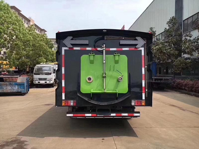 7、垃圾箱采用雙層內(nèi)膽不銹鋼結(jié)構(gòu),內(nèi)部加裝過濾網(wǎng)板,能有效地防止樹葉、塑料袋之類的輕飄物堵塞風口及灰塵的排出。內(nèi)置污水報警系統(tǒng),通過后門處污水閥方便的將污水排至下水道,最大限度的利用了垃圾箱裝載垃圾的空間。廂體采用傾翻卸料,帶高壓沖洗自潔裝置。