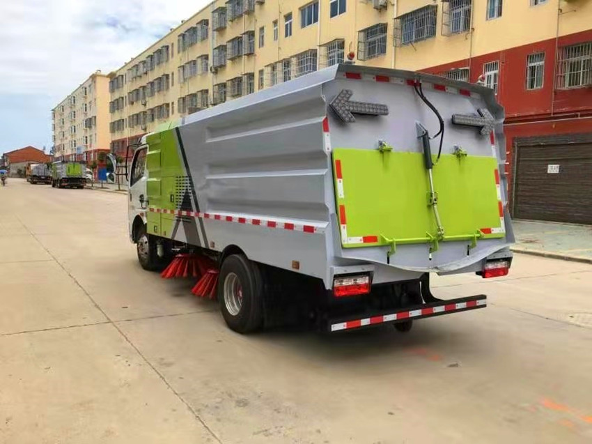 1、東風多利卡掃路車采用吸掃混合的方式收集垃圾,濕式除塵,電液傾翻卸料的作業(yè)方式對路面進行清掃作業(yè)。