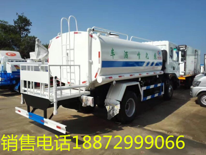 2、前部安裝鴨嘴式噴頭兩個(gè),后部帶錐形對沖噴頭兩個(gè),后工作平臺 上 部左右各安裝花灑噴頭1個(gè),后平臺下部左右各安裝后灑砣噴頭1個(gè),罐體右側(cè)上端安裝高位花灑噴頭兩個(gè),平臺上安裝綠化灑水高炮,炮可全方位旋轉(zhuǎn),可連續(xù)調(diào)成直沖狀、大雨、小雨、毛毛雨,帶安全護(hù)欄。罐體右后部帶自上水裝置,帶自流閥。