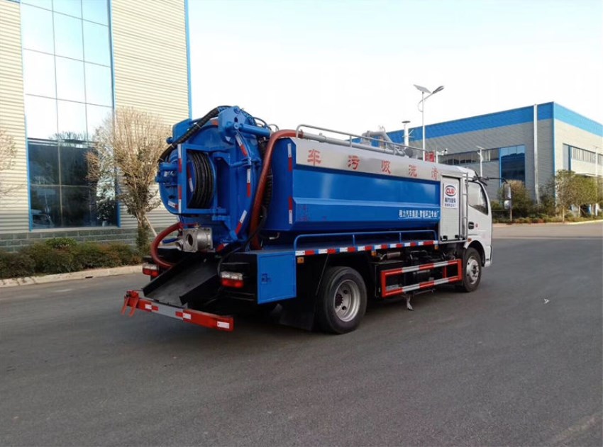 如果吸糞車出現了溢罐現象。我們需要清洗被污染的部位:真空泵、油水分離器,水汽分離器、四通閥(吸污泵開關)、氣管。首先排空吸糞車罐體內的污水。然后將讓吸污泵運行一會,排出四通閥、氣管內的污水,雜物(此操作時間要短,防止吸污泵磨損)。然后將吸污泵,油水分離器中被污染的機油放掉,用風槍吹干凈,并更換新的機油。水汽分離器,四通閥以及連接管道,用大量清水沖洗干凈,再用風槍吹干。最后將這些部件原樣裝回,即可照常使用。