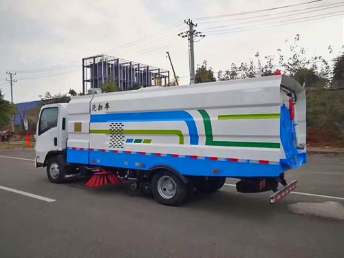 8、五十鈴掃路車清水箱容積1.5立方,垃圾箱容積4立方,可持續工作4小時以上!